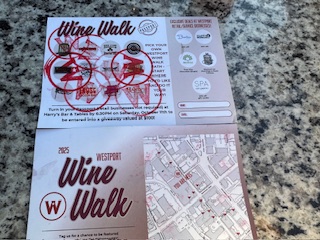 Westport’s third annual Wine Walk commenced on a blue sky Saturday afternoon. Most locals before leaving their thirties probably have tales to tell of their adventures in Westport. Except for the Labor Day weekend art show or a Sunday brunch, Cutest and I now typically give Westport a pass. But here was an opportunity to wander among these historic 1800s buildings and discover what new-to-us food and beverage providers we could unearth. Glad we did!