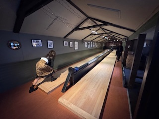 We learned about the Sunday Roast which is a thing by itself. It is a reminder of “the olden days” when British families sat down on Sunday afternoons for a huge meal after church (if they had enough money). The restaurant version is some kind of roasted beef, pork or lamb, roasted potatoes, veggies, and Yorkshire pudding, which, of course isn’t pudding at all, but like a popover. It’s a meal that can really keep you full for two days. We had ours at the Sheep Heid Inn, considered to be the oldest continually operating Scottish pub and inn (since 1360). It is located where sheep used to be slaughtered in Duddingston, a suburb of Edinburgh. They also play skittles there. Who knew?